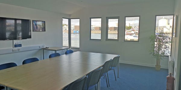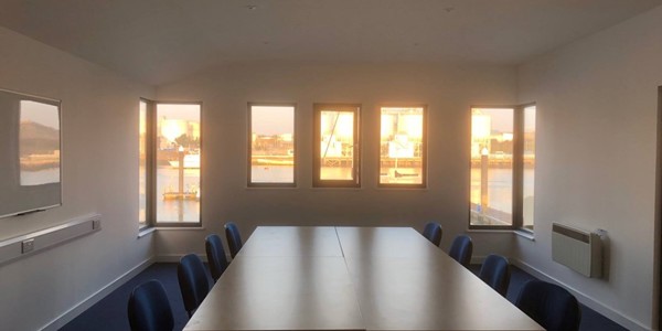 Ideal for business meetings or training sessions, the meeting room overlooks the Cattewater with stunning, triple-aspect windows over the waterfront.