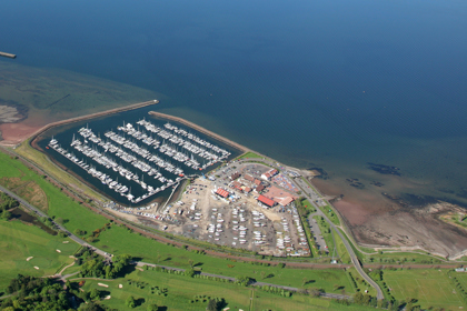 By sea, the Marina is accessible at all states of the tide, sheltered behind the northern tip of the island of Great Cumbrae.