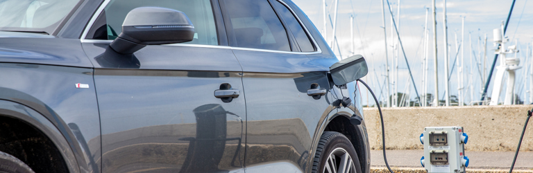The 22 Khw 'fast' charging point has two charging ports for electric cars. It is located at the lower car park next to the L/M bridgehead.