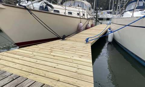 - Steve has been working hard refurbishing and re-decking finger pontoons.