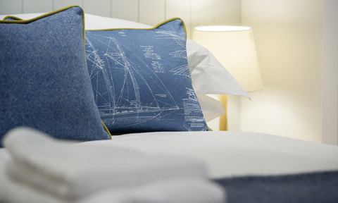 Each suite an individual stamp with feature fabrics and wallpaper created from blueprints of yachts designed by the world renowned William Fife III and family of nearby Fairlie. Walls will also feature photographs of Fife yachts racing in Scotland.