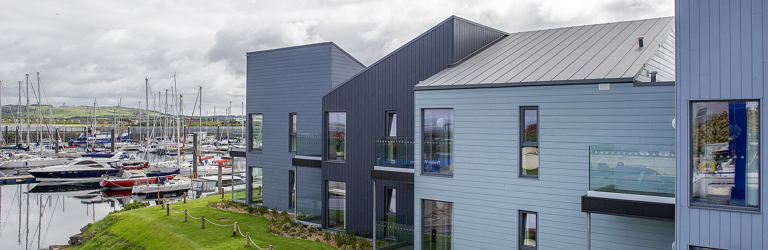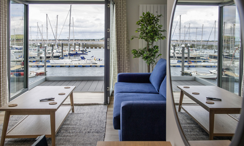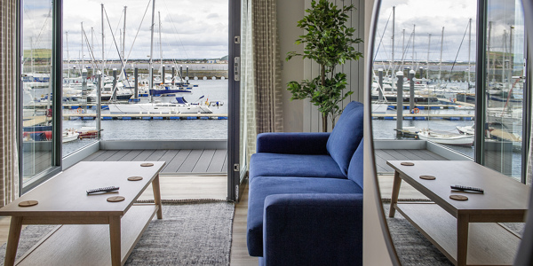 Inspired by a 'Scandi-Scot' design and the popular 'hygge' lifestyle that represents comfort and warmth, the ten suites are built with ocean coloured weatherboarding which echo Scandinavian timber houses and traditional Scottish boathouses. The pitched roofs reflect the rigging from yachts in the marina with the maritime theme continued internally into the soft furnishings.